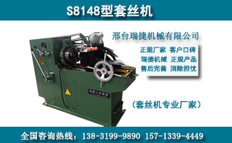 河北省邢臺(tái)市瑞捷機(jī)械設(shè)備公司,創(chuàng)建于2003年,坐落在全國(guó)的機(jī)械制之鄉(xiāng)-邢家灣工業(yè)區(qū)。本廠專(zhuān)業(yè)制造套絲機(jī),TS80型套絲機(jī),TS64型套絲機(jī),TS50型套絲機(jī),螺栓套絲機(jī),S8139型套絲機(jī),S8148型套絲機(jī)圓鋼/圓管套絲機(jī)及切線板牙頭等配套產(chǎn)品。